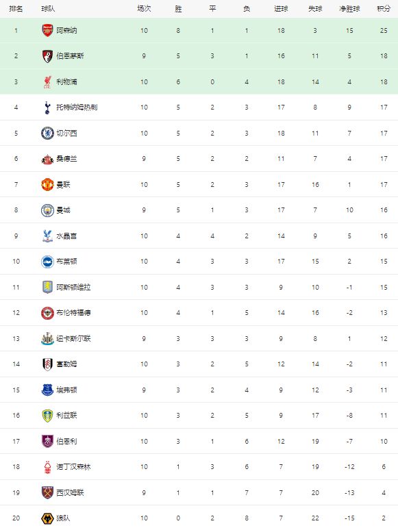 随着切尔西1-0热刺,阿森纳2-0,英超最新积分榜:利物浦2-0升第3